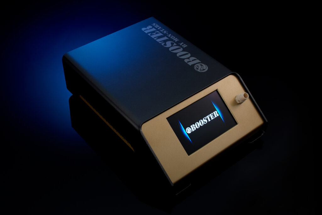 BOOSTER(ブースター)は、機器が自動で行う的確な血流制限によって、短時間・低負荷の速筋トレーニングを可能にする機器です。機器の操作に特別な資格は必要なく、わずか10~15分の短時間で、誰でも簡単に効果の高いトレーニングを行えます。筋力強化をはじめ、ボディメイクやリハビリや痛みの改善、エイジングケア、血流促進など使い方は多種多様です。